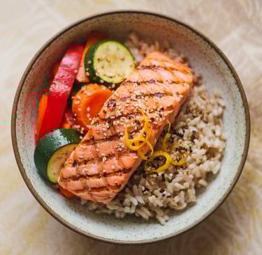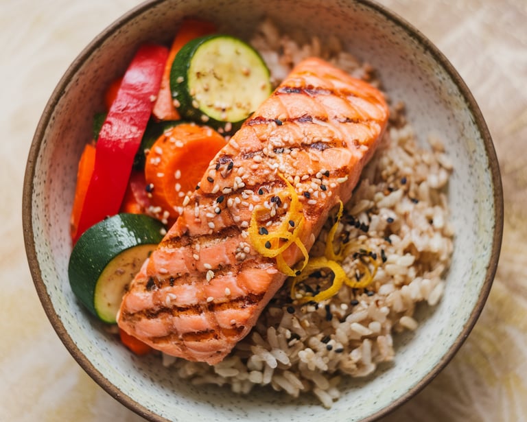 🥗 Receta saludable: Bowl de salmón con arroz integral y verduras salteadas