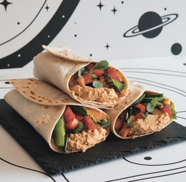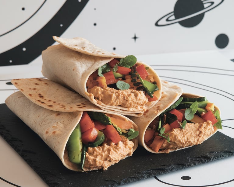 🧑🍳 Receta Inspirada: Tacos de Tortilla Integral con Verduras y Hummus