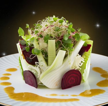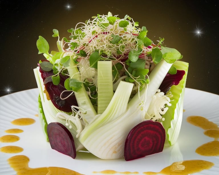 Una ensalada llena de colores, formas raras y sabor cósmico. Ideal para sorprender, ligera y completamente vegetal.