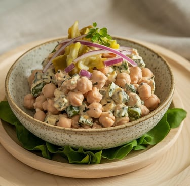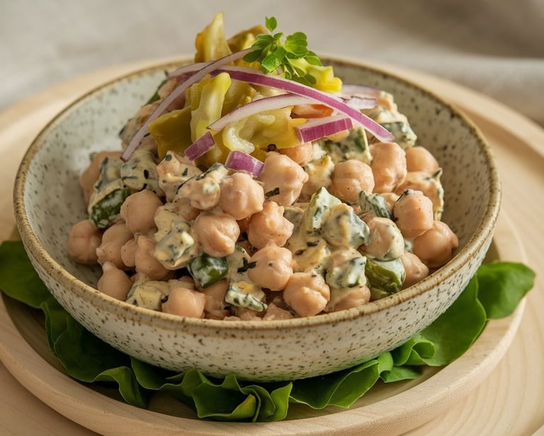 Inspirada en sabores del mar pero totalmente vegetal. Esta ensalada recuerda al atún gracias a las algas, pero está hecha con garbanzos.
