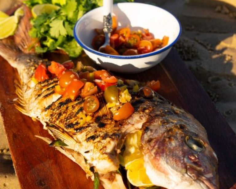 🍽️ Receta del día: Pescado a la brasa con aliño de ajo y limón