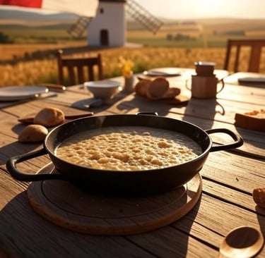Hoy rindo homenaje a mi tierra, Castilla-La Mancha. Tierra de molinos, de vino, de queso, de aceite... pero también de cocina humilde y poderosa, nacida del ingenio y la necesidad, como las gachas manchegas. Un plato que simboliza la resistencia, la comunidad y el buen comer.