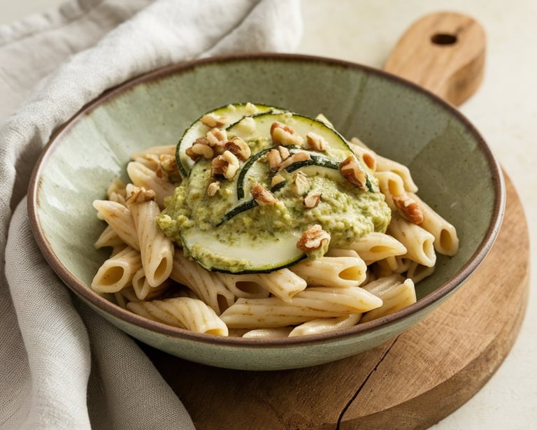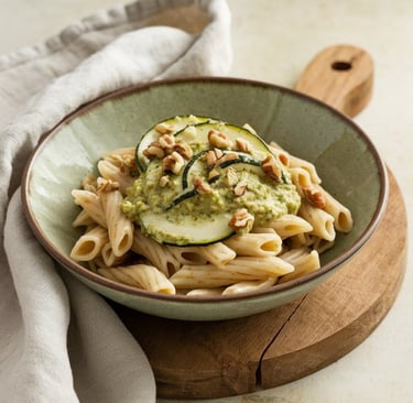 🍽️ Receta del día: Pasta sin trigo con pesto de calabacín y nueces