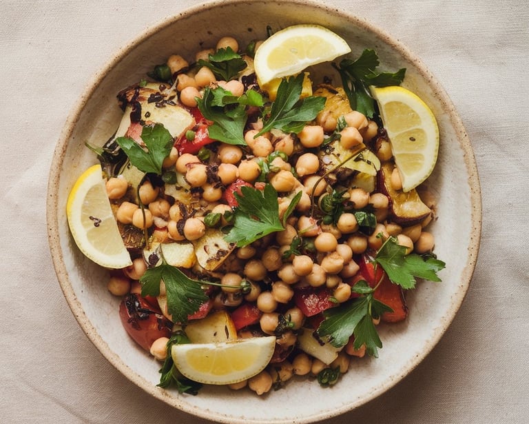 🍽️ Receta del día: Ensalada templada de garbanzos y verduras asadas
