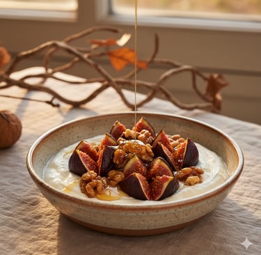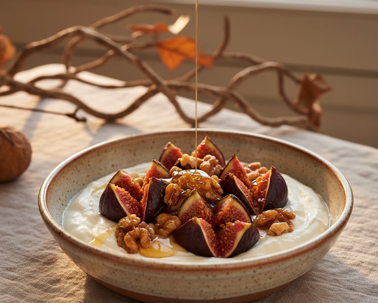 Higos Asados con Crema de Yogur y Nueces Caramelizadas con Miel